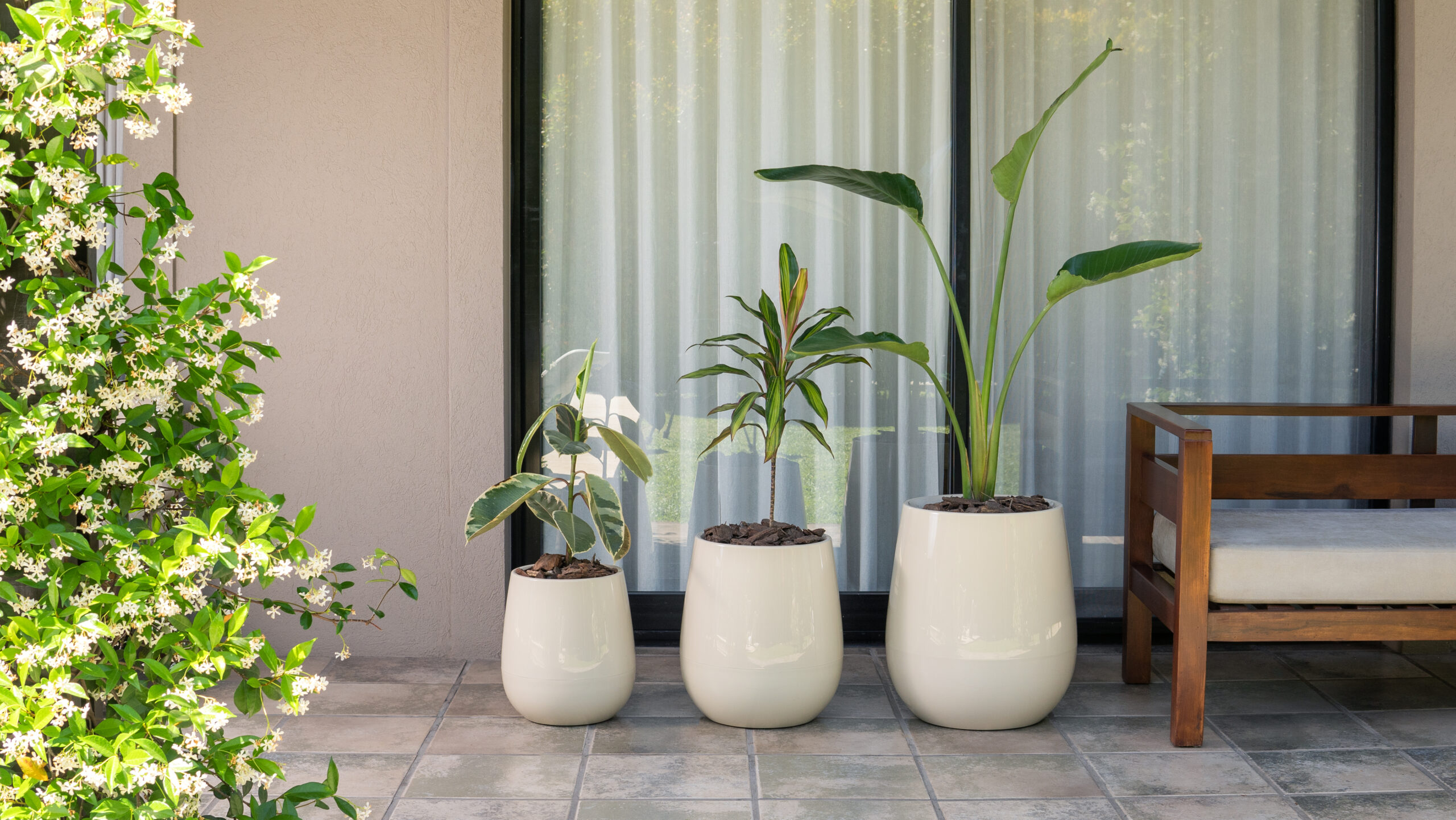 Macetas Uovo Autorriego – Combo 3 tamaños Marfil